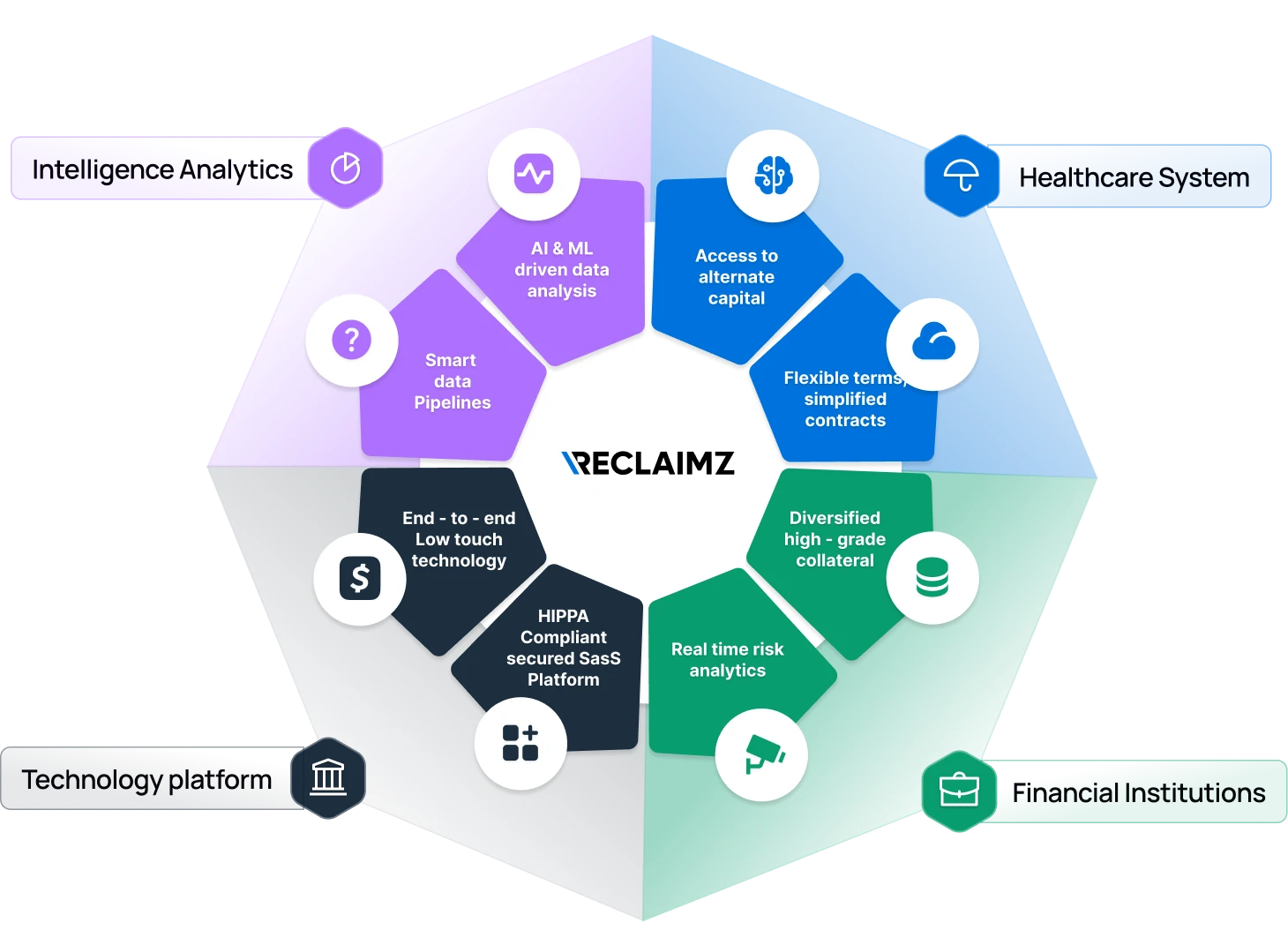 Reclaimz is the first-ever SaaS platform, created exclusively by finance & healthcare domain experts, to bring hospital systems & financial institutions together to unlock a new asset class for financing, leveraging AI & ML based algorithms for data analytics.